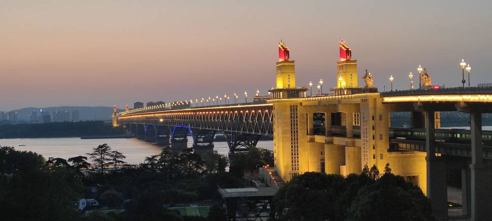 南京长江大桥位于南京市鼓楼区下关和浦口区之间,是长江上第一座由我国自行设计和建造的双层式铁路、公路两用桥梁,在中国桥梁史上具有重要意义。上层公路桥长4589米,可容4辆大型汽车并行;下层铁路桥长6772米,两列火车可同时对开。1960年以“世界最长的公铁两用桥”被载入《吉尼斯世界记录大全》。南京长江大桥是继武汉长江大桥、重庆白沙陀长江大桥之后第三座跨越长江的大桥,也是三座大桥中最大一座。夜幕降临,花灯齐放,大桥雄姿更加清晰、迷人,“天堑飞虹”的夜景成为现代金陵四十景之一。南京长江大桥于1960年1月18日正式动工;1968年9月铁路桥建成通车,同年12月公路桥通车。大桥铁路桥通车后,津浦、沪宁两铁道线正式铺通,从北京可直达上海,自此京沪铁路的贯通无长江阻拦。南京长江大桥是新中国第一座依靠自己的力量设计施工建造而成的铁路、公路两用桥,它的建成开创了我国“自力更生”建设大型桥梁的新纪元。