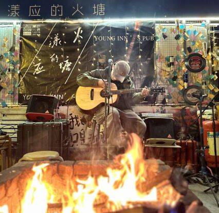 “天台”式清吧,篝火围坐氛围拉满,不插电live小酒馆